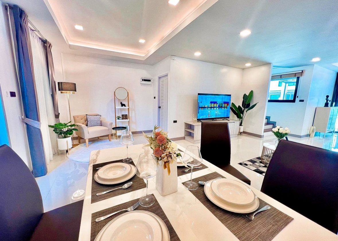 Представляем вам потрясающую виллу площадью 140 кв. м. в живописном посёлке NONG PRUE, всего в нескольких шагах от главной дороги Сухумвит. Это идеальное место для комфортного проживания или успешной сдачи в аренду!